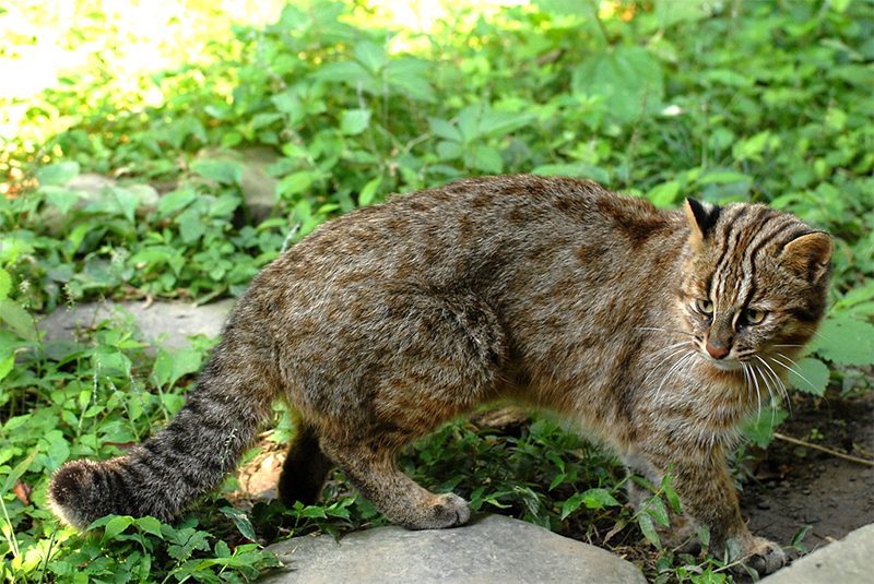 ツシマヤマネコは、日本では長崎県対馬だけに生息する野生のネコ科動物です。1971年に国の天然記念物に、1994年に国内希少野生動植物種に指定されており、環境省レッドリストでは「絶滅危惧IA類」とされています
